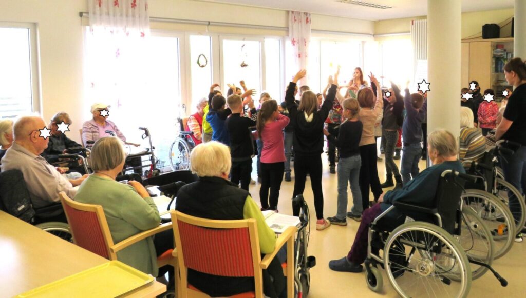 Grundschule Ellingen in St. Elisabeth ELLINGEN Man kann sich zwar nicht früh genug kümmern – doch die Klassen 1c und 2c besuchten das altehrwürdige Seniorenheim St. Elisabeth nicht zur