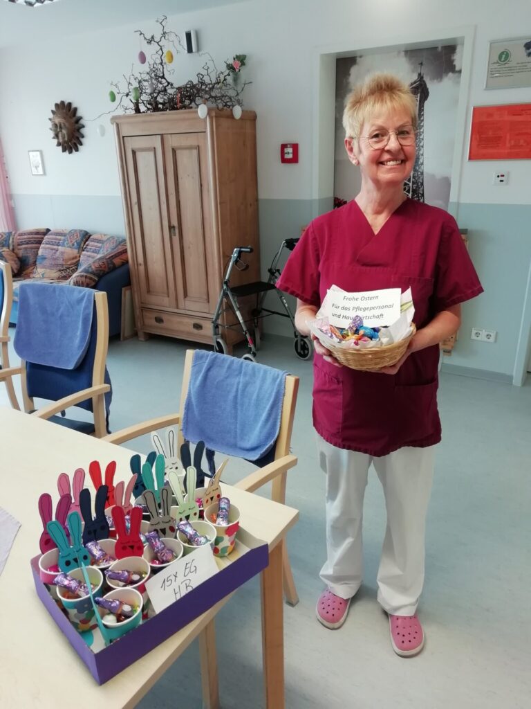 Viele Vorbereitungen gingen vor Ostern von statten, diese wurden natürlich auch vom Osterhasen belohnt.Schwer beladen beschenkte er die Senioren und das Personal.