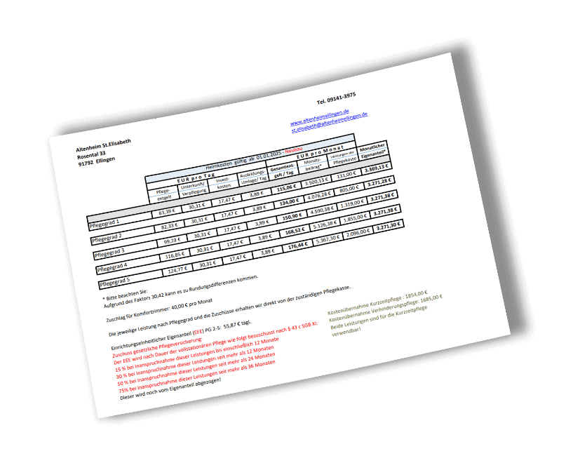 Preisliste Heimkosten